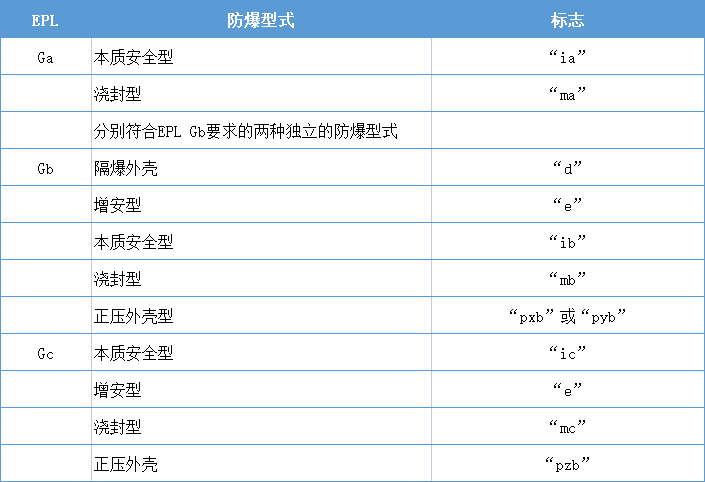 (5)部分防爆型式與EPL的對應(yīng)關(guān)系