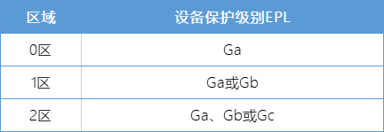 根據(jù)危險(xiǎn)場所分類,防爆區(qū)域與適用的設(shè)備保護(hù)級(jí)別EPL關(guān)系如下: